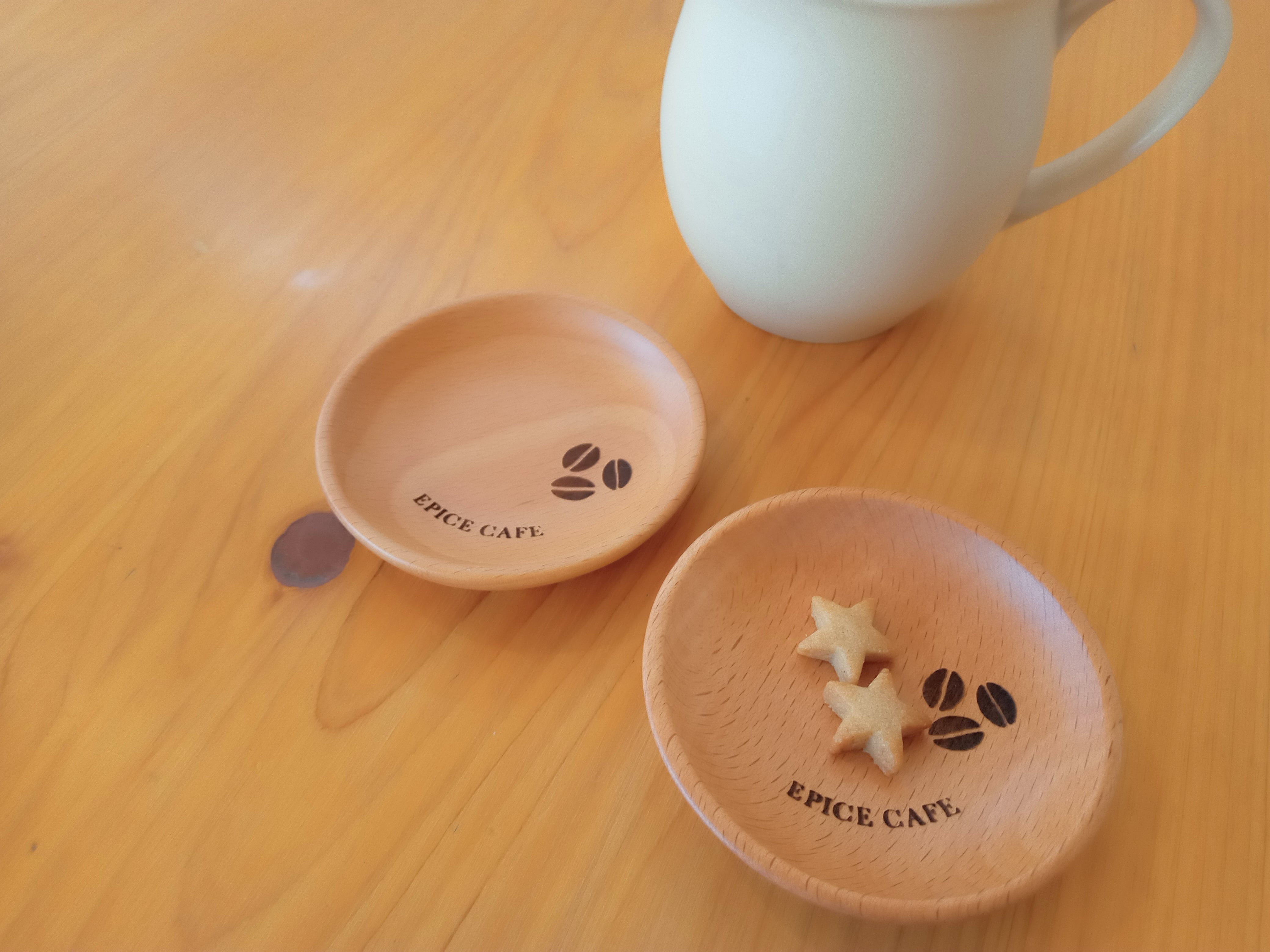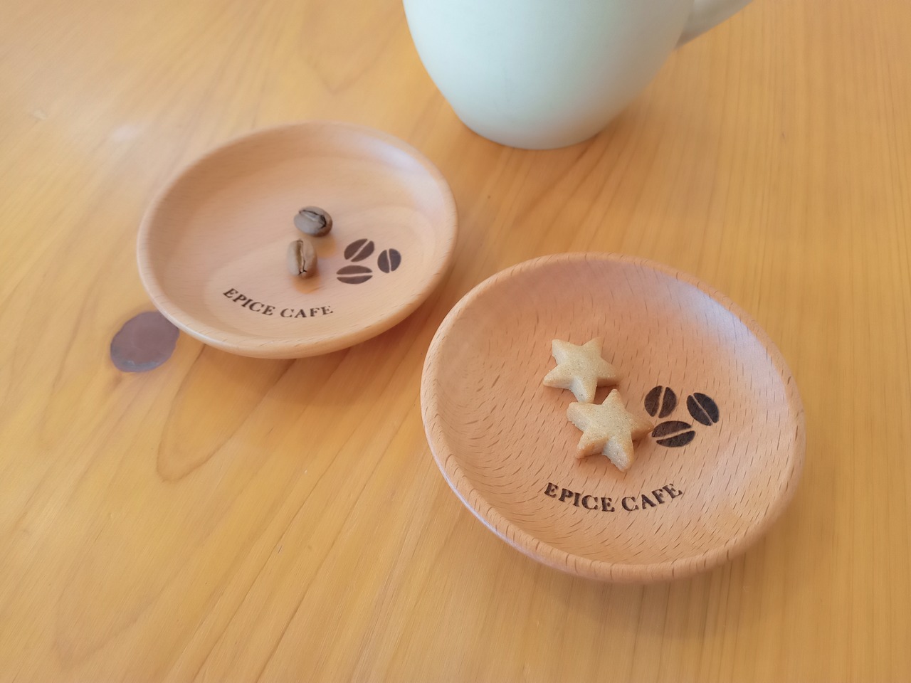 コーヒー豆の柄は本物のコーヒー豆とほぼ同じサイズで彫刻しており、かわいらしいコーヒー豆と一緒にカフェタイムをお過ごしいただけます☆